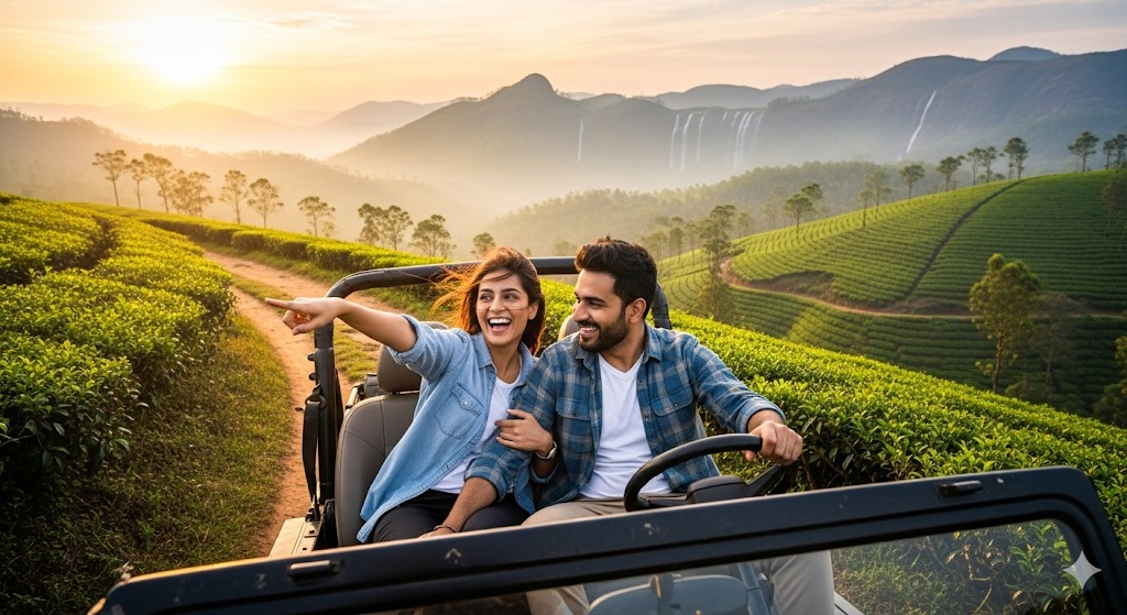 Add a touch of adventure to your honeymoon with our off-road jeep safaris. Explore hidden trails, sunrise viewpoints, rolling tea plantations, and waterfalls while enjoying a safe and guided journey through Munnar’s untouched landscapes. Adventure and romance come together here.